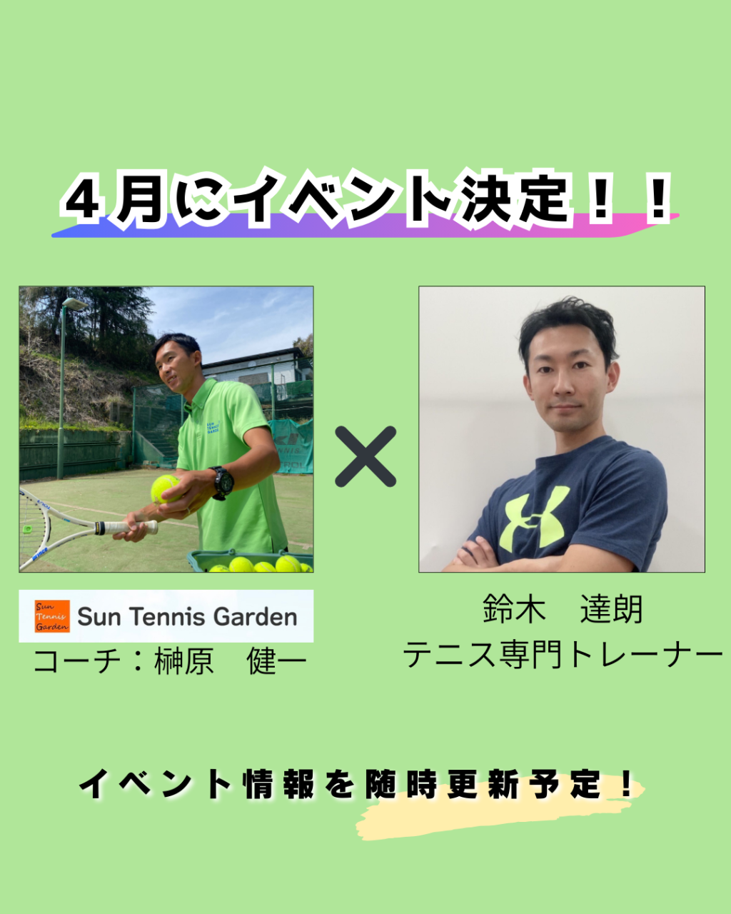 テニス専門トレーナー🎾「鈴木達朗」トレーナーによるスペシャルレッスン✨
